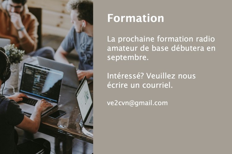 Le club offre une formation radioamateur de base en coopérative. Le nouveau radioamateur participe aux activités, ateliers et réunions du club et fait sa formation en ligne à son rythme.