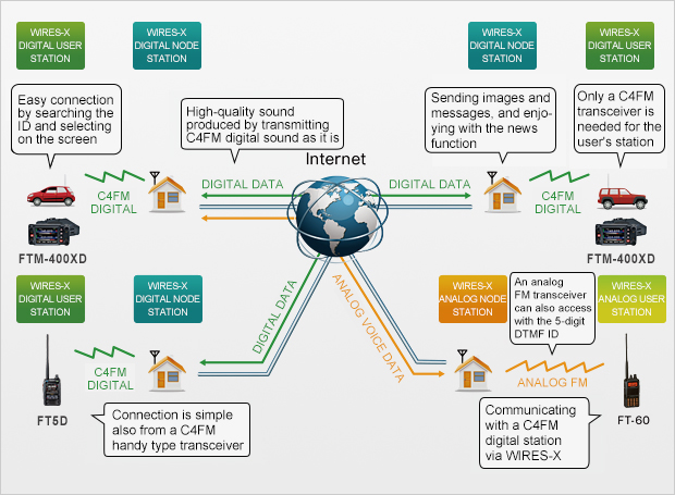 Il est donc possible pour un radioamateur avec une radio portable de ce connecter à une chambre qui regroupe des répéteurs au Québec ou partout dans le monde. Le répéteur du Club est connecté en permanence à la chambre French Riviera 47625 sur la Côte d’Azur. Pour connaitre les chambres actives, visitez le site suivant: WIRES-X ACTIVE ROOM ID LIST